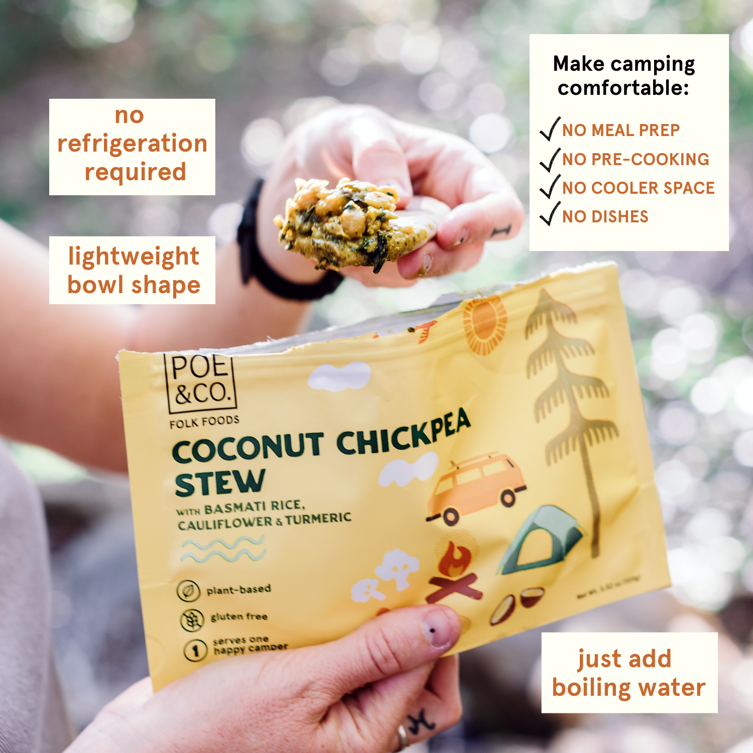Creamy coconut milk, bright aromatics, and hearty chickpeas — this gluten-free stew delivers craveable flavor and plant-based protein. Clean, satisfying fuel for long days outdoors. Made in small batches by chefs with simple ingredients. 3-year shelf life.